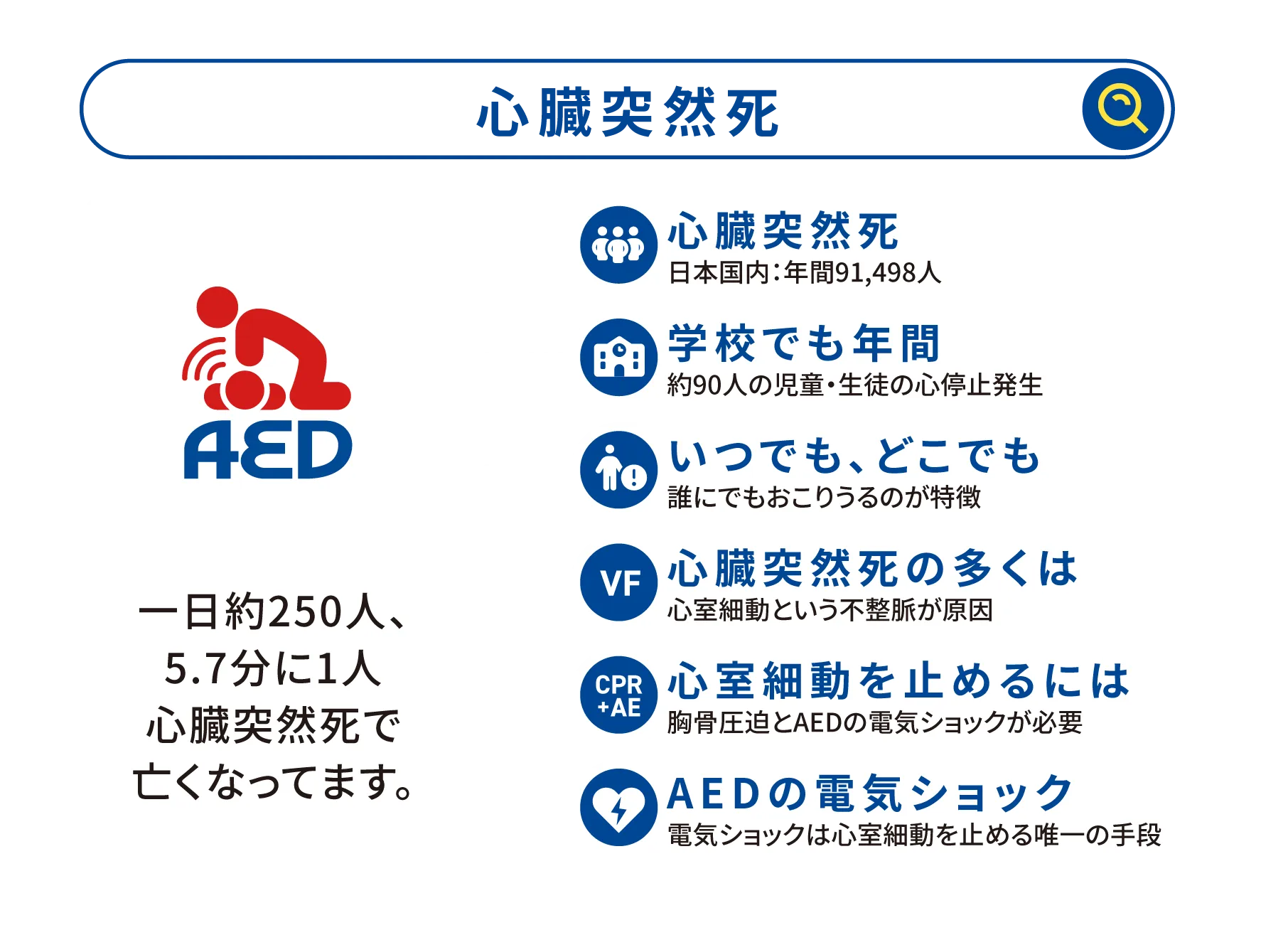 心室細動が発生した場合、早期の心肺蘇生とAEDによる除細動が、救命の鍵をにぎると言われています。